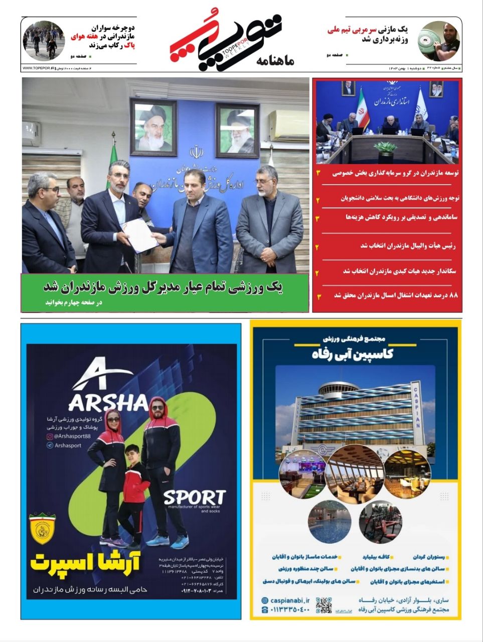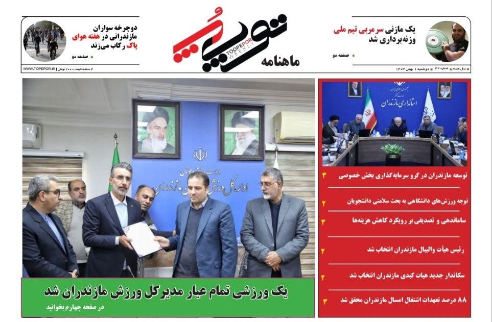 شماره جدید ماهنامه توپپُر در بهمن ماه ۱۴۰۳ به صورت الکترونیکی از این رسانه در دسترس عموم قرار دارد. در این شماره در خصوص موضوعات مختلف استانداری و ورزش مازندران مطالبی منتشر شد.