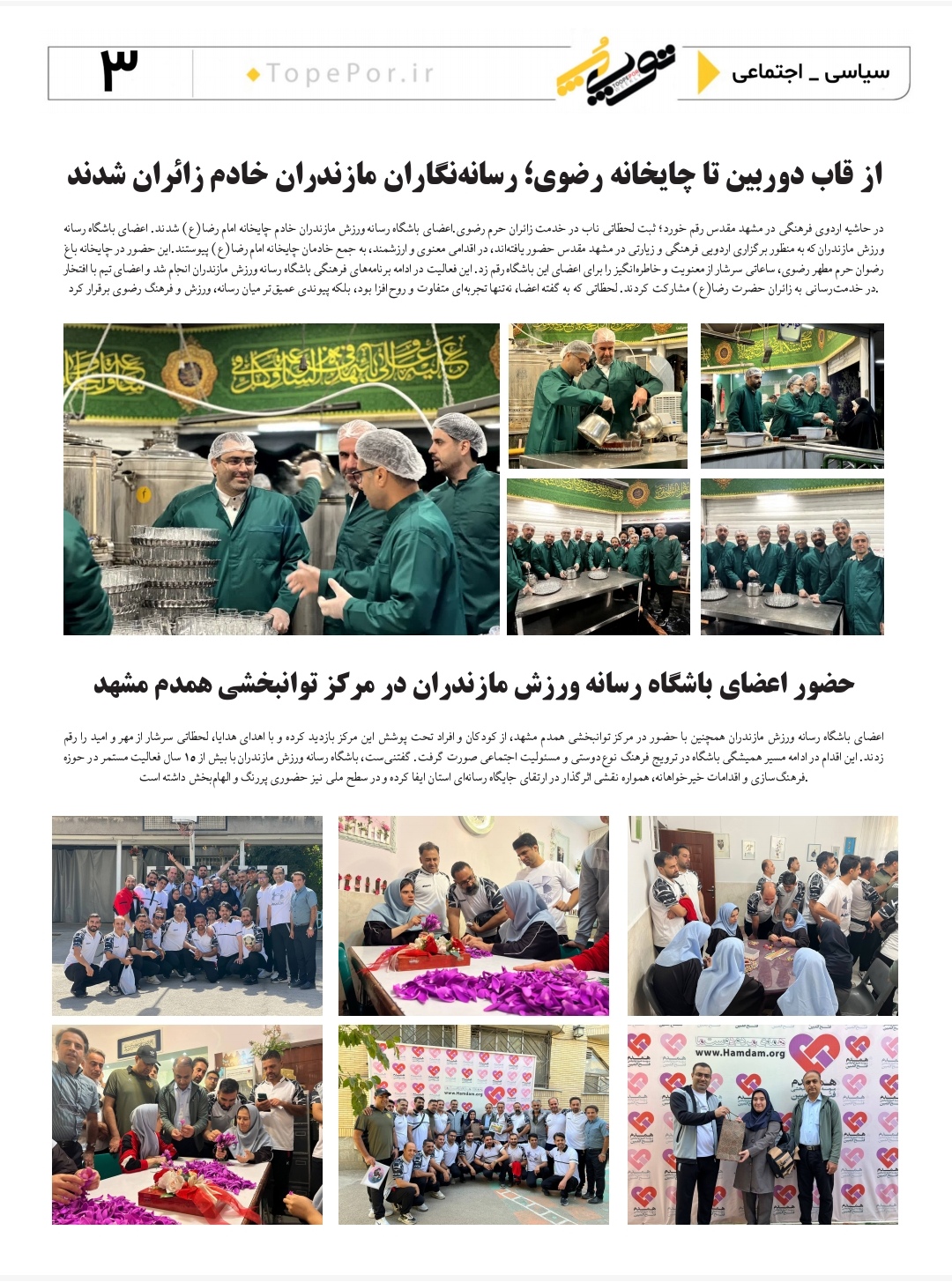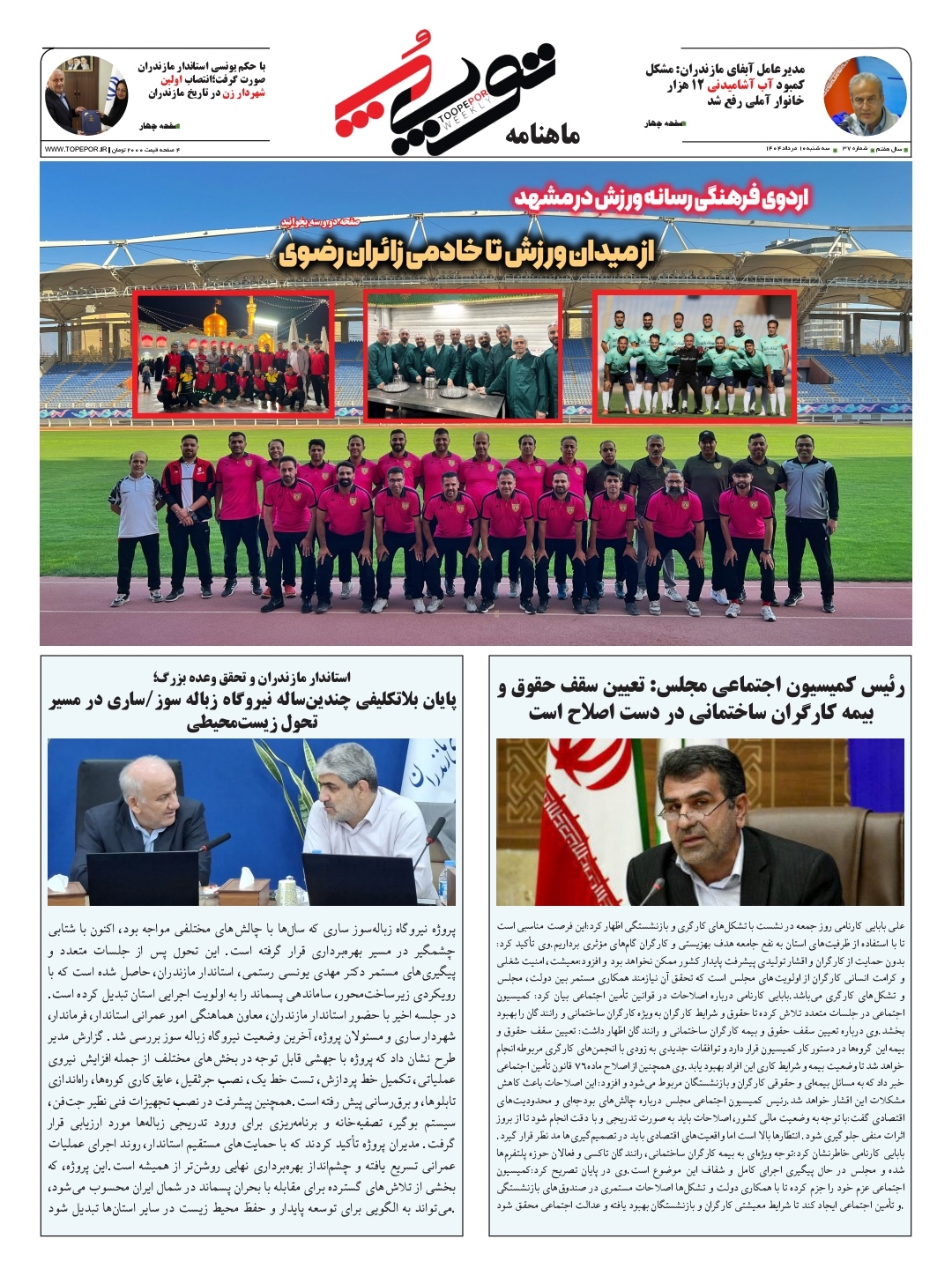شماره جدید ماهنامه توپپُر در مهر ماه ۱۴۰۴ به صورت الکترونیکی از این رسانه در دسترس عموم قرار دارد. در این شماره در خصوص موضوعات مختلف شهری، ورزشی و اجتماعی و فرهنگی و توجه ویژه به و ورزش و سلامت در مازندران مطالبی منتشر شد.